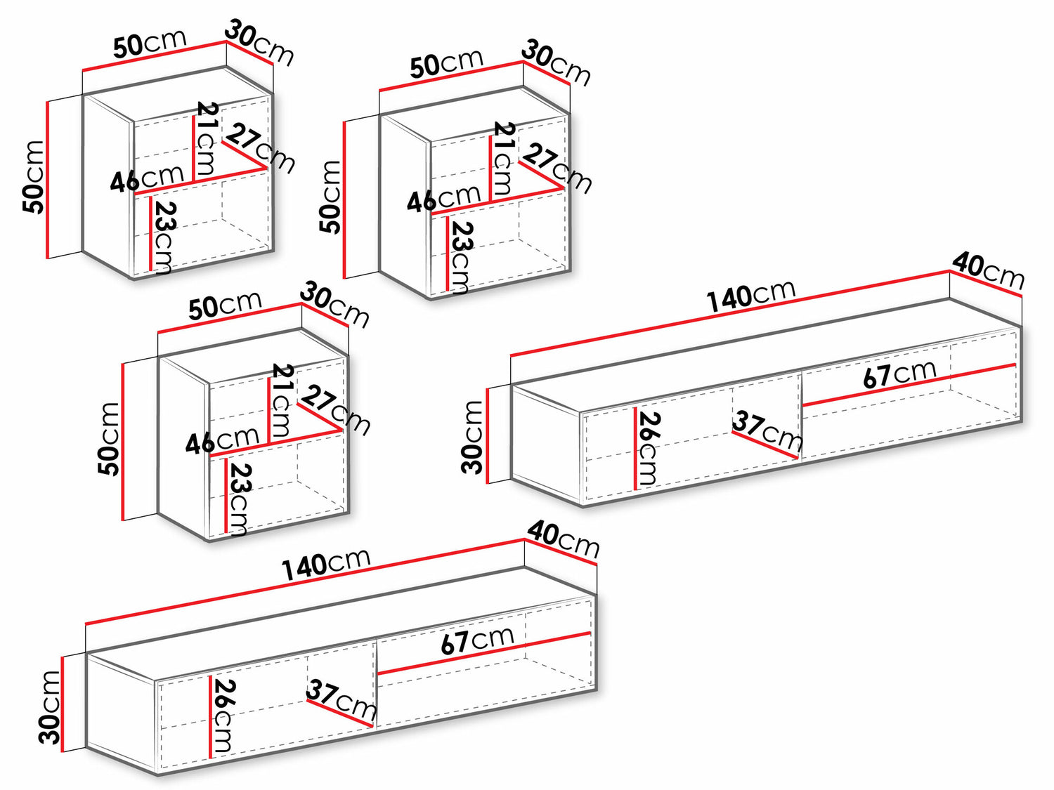Hængende skabs dimensioner50 x 50 x 30 cm