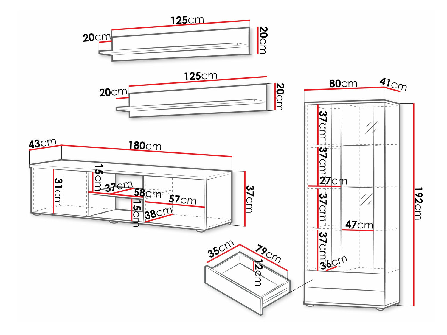 TV bordets dimensioner37 x 180 x 43 cm