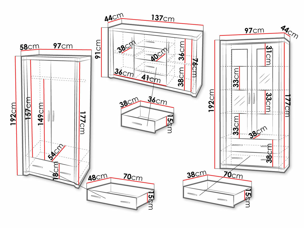 Dimensioner på garderobeskabe192 x 97 x 58 cm