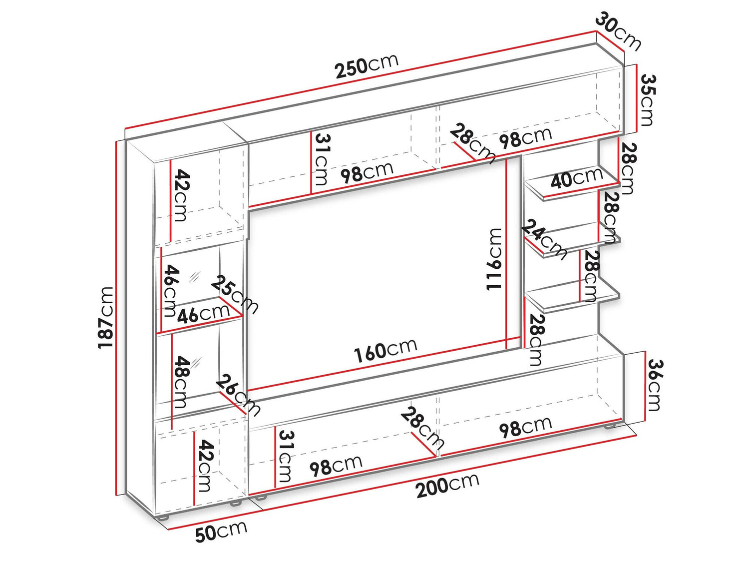 TV niche dimensioner1160 x 1600 mm