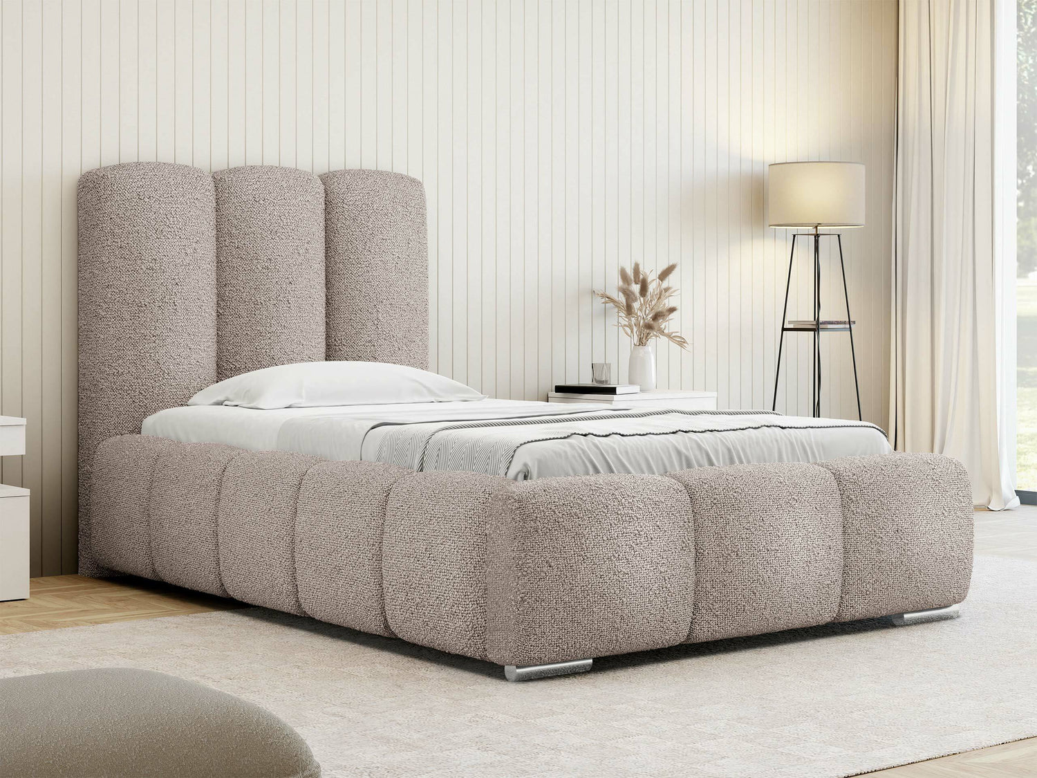"Boucle" (Bouclé) stof skiller sig ud med sit unikke teksturerede mønster, skabt af løkker og knuder i forskellige størrelser. Dette karakteristiske træk giver møbler enestående karakter og en hyggelig følelse. Stoffets overflade kan være blød eller uldagtig i tekstur. Takket være dens robuste struktur bevarer dette stof sin form godt, hvilket gør det til et fremragende valg til sofaer, lænestole og andre møbler. Hvis du ønsker at skabe et raffineret og moderne rum, er dette stof et perfekt valg.