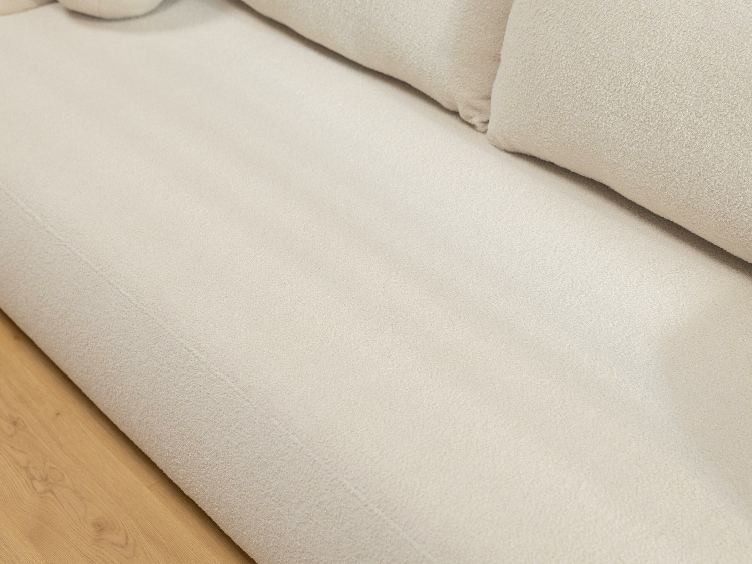 "Boucle" (Bouclé) stof skiller sig ud med sit unikke teksturerede mønster, skabt af løkker og knuder i forskellige størrelser. Dette karakteristiske træk giver møbler enestående karakter og en hyggelig følelse. Stoffets overflade kan være blød eller uldagtig i tekstur. Takket være dens robuste struktur bevarer dette stof sin form godt, hvilket gør det til et fremragende valg til sofaer, lænestole og andre møbler. Hvis du ønsker at skabe et raffineret og moderne rum, er dette stof et perfekt valg.