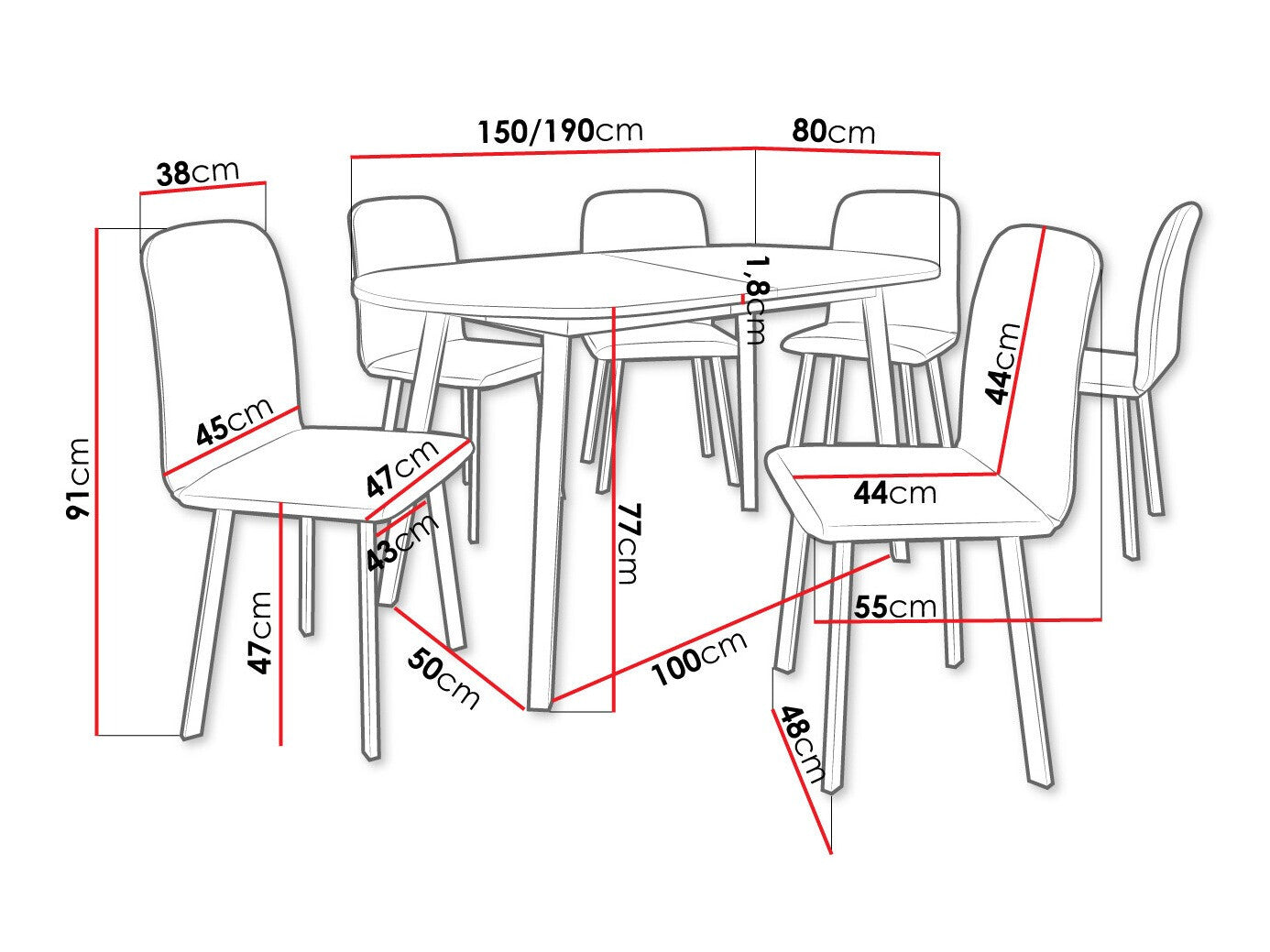 Dimensioner på stole91 x 48 x 55 cm