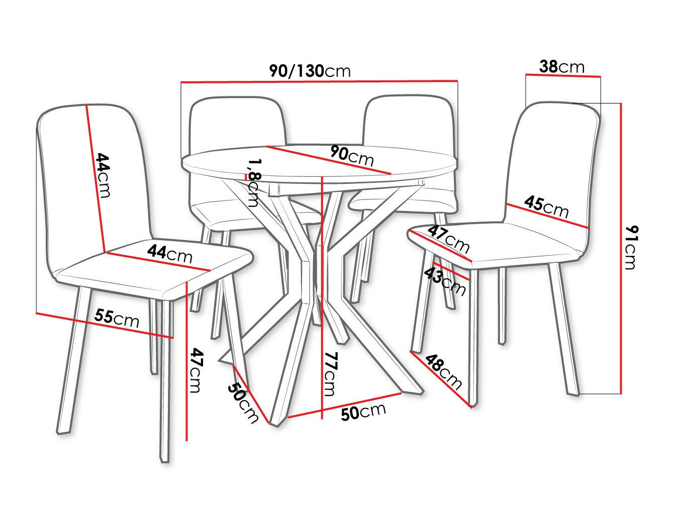 Dimensioner på stole91 x 48 x 55 cm