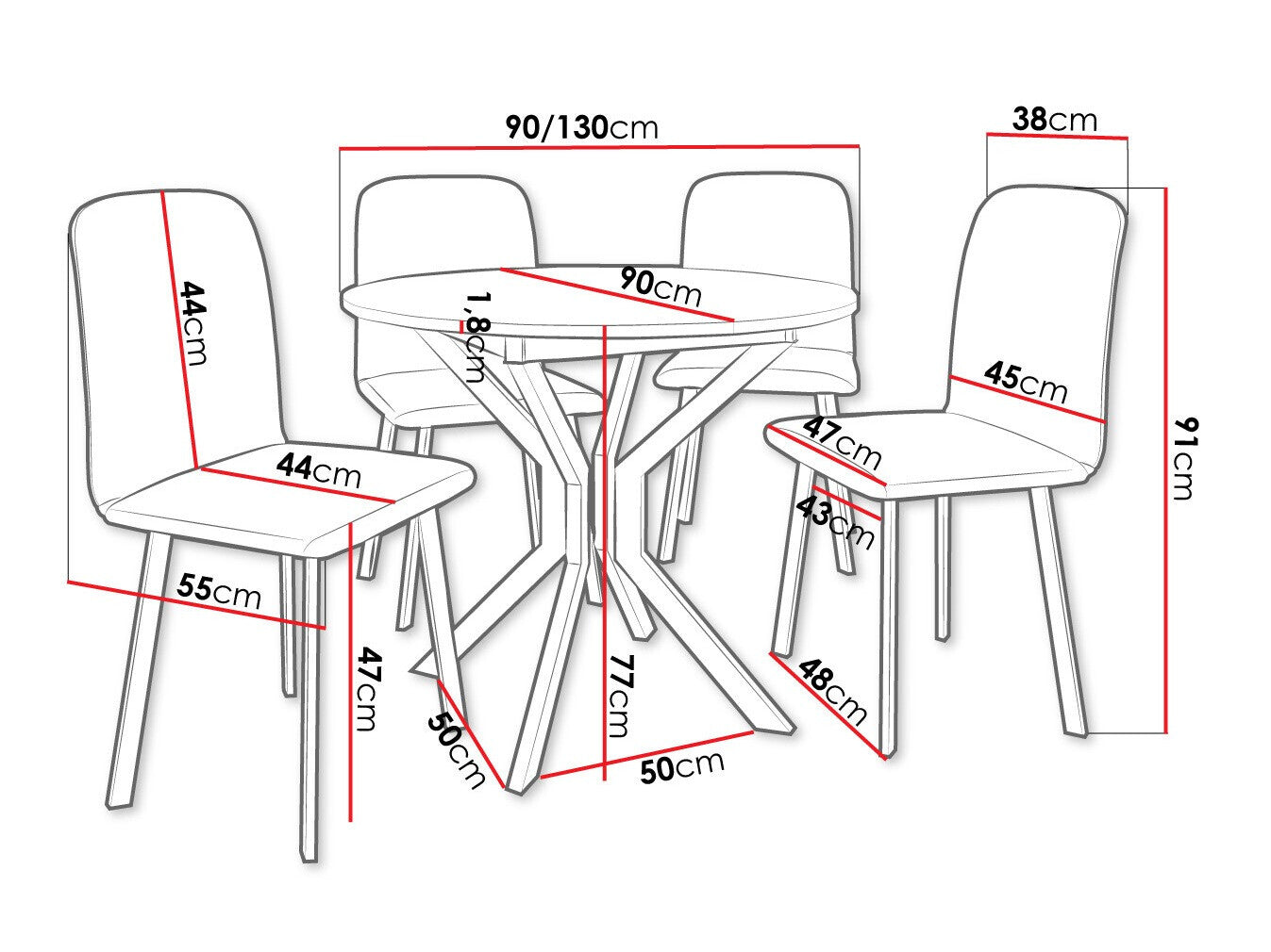 Dimensioner på stole91 x 48 x 55 cm