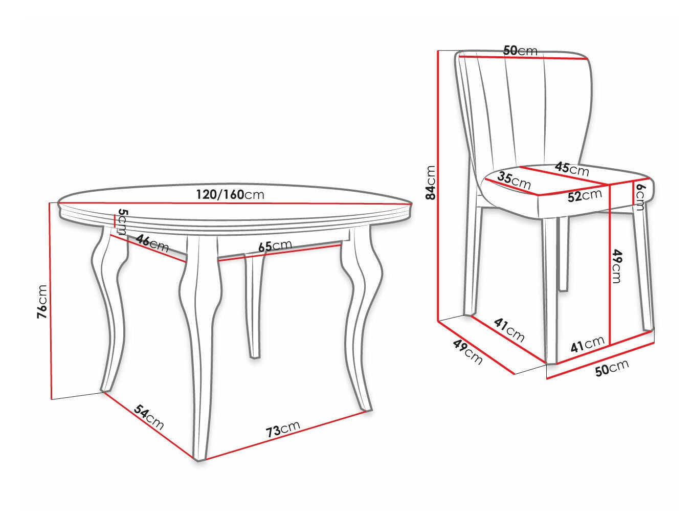 Dimensioner på stole84 x 50 x 55 cm