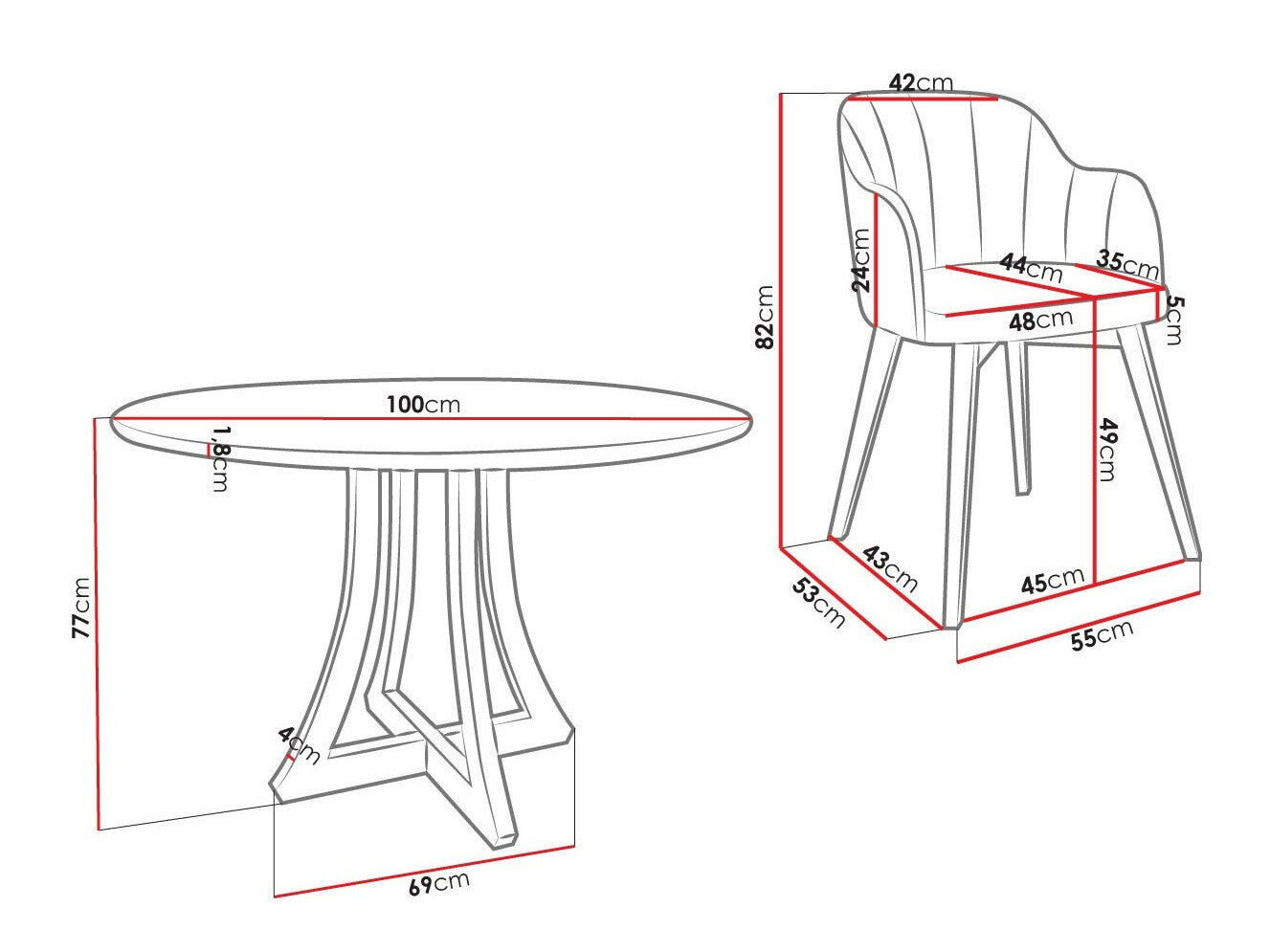 Dimensioner på stole82 x 55 x 53 cm