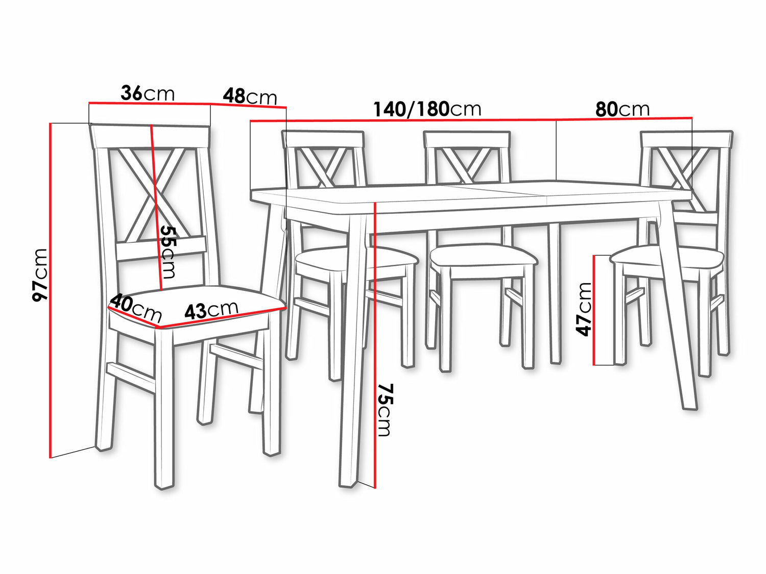 Dimensioner på stole97 x 43 x 48 cm