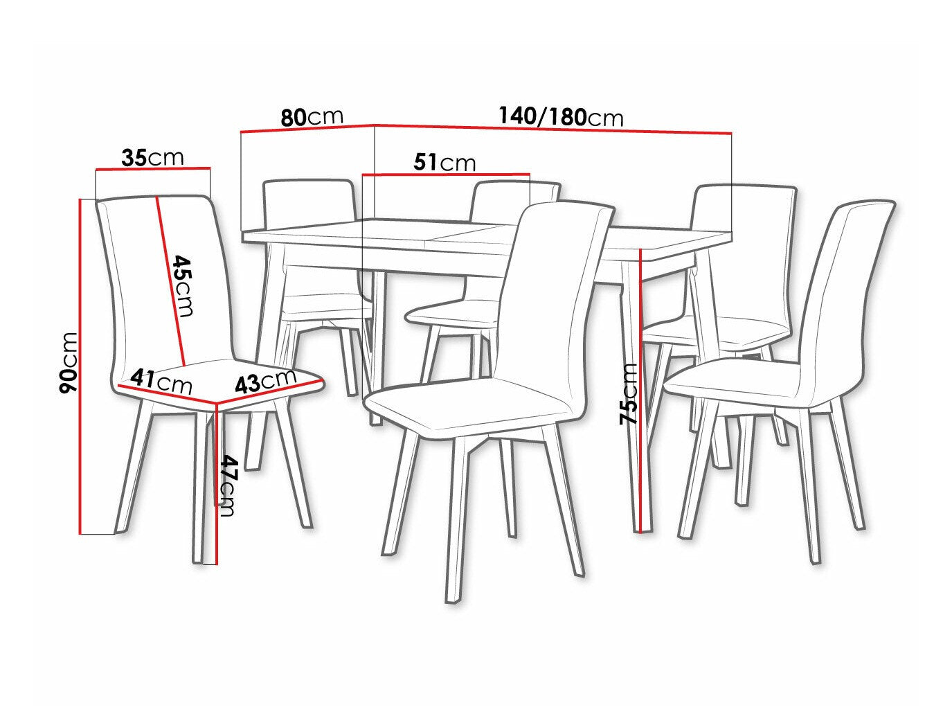Dimensioner på stole90 x 43 x 51 cm