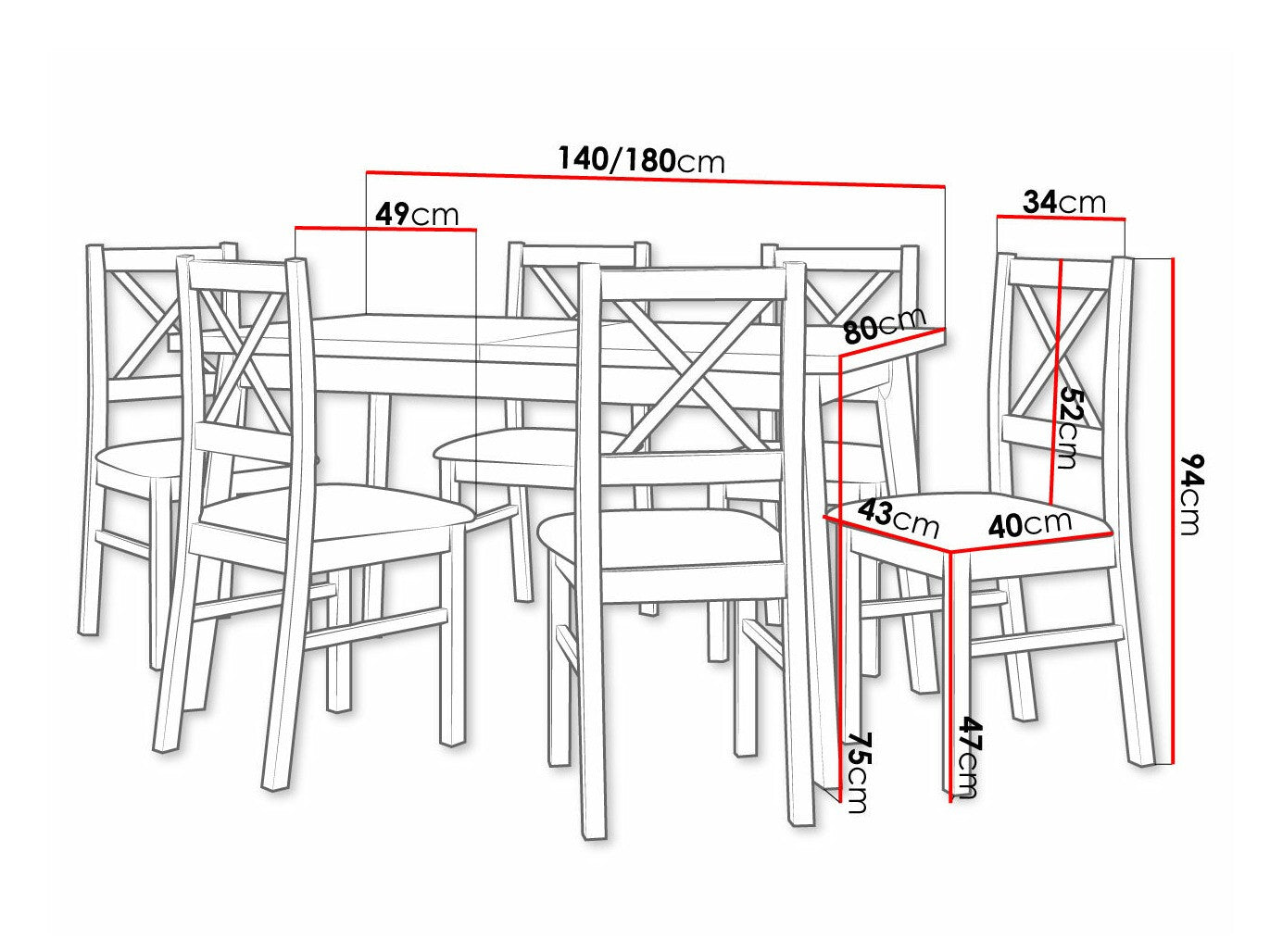 Dimensioner på stole94 x 43 x 49 cm