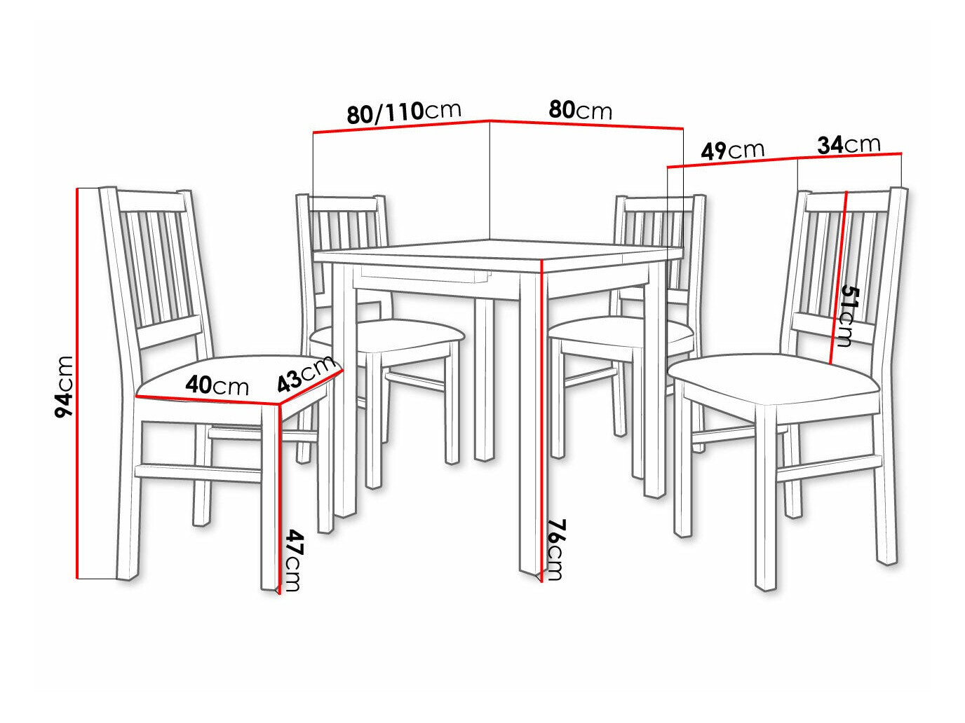 Dimensioner på stole94 x 43 x 49 cm