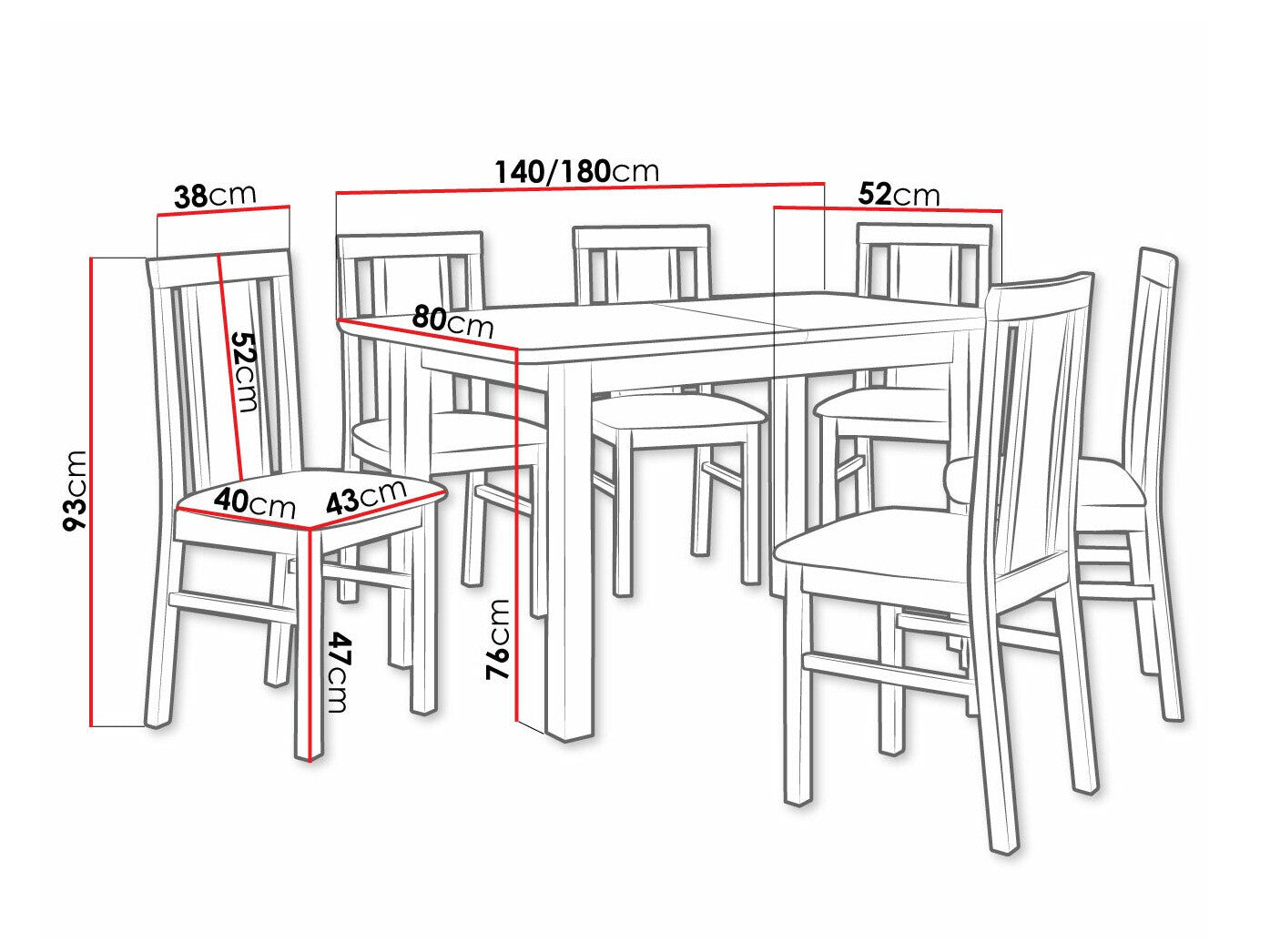 Dimensioner på stole93 x 43 x 52 cm