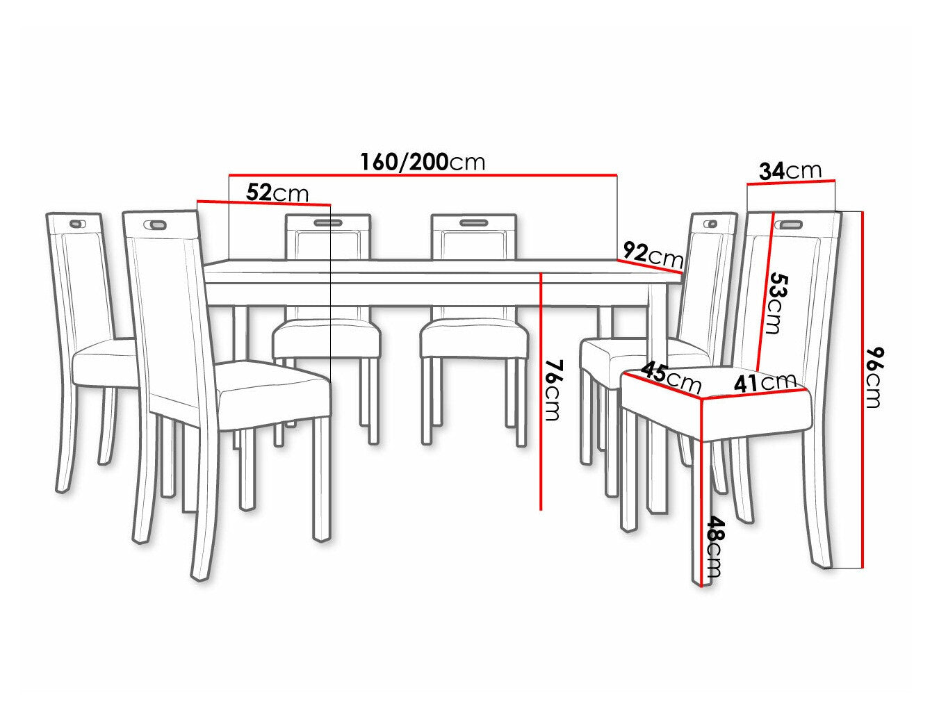 Dimensioner på stole96 x 45 x 52 cm