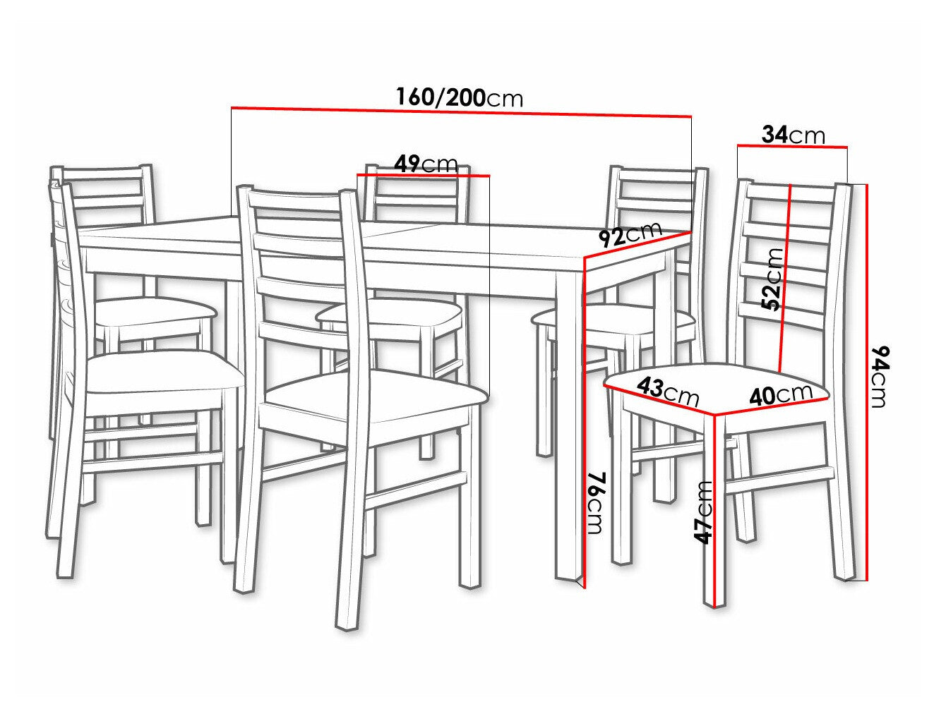 Dimensioner på stole94 x 43 x 49 cm