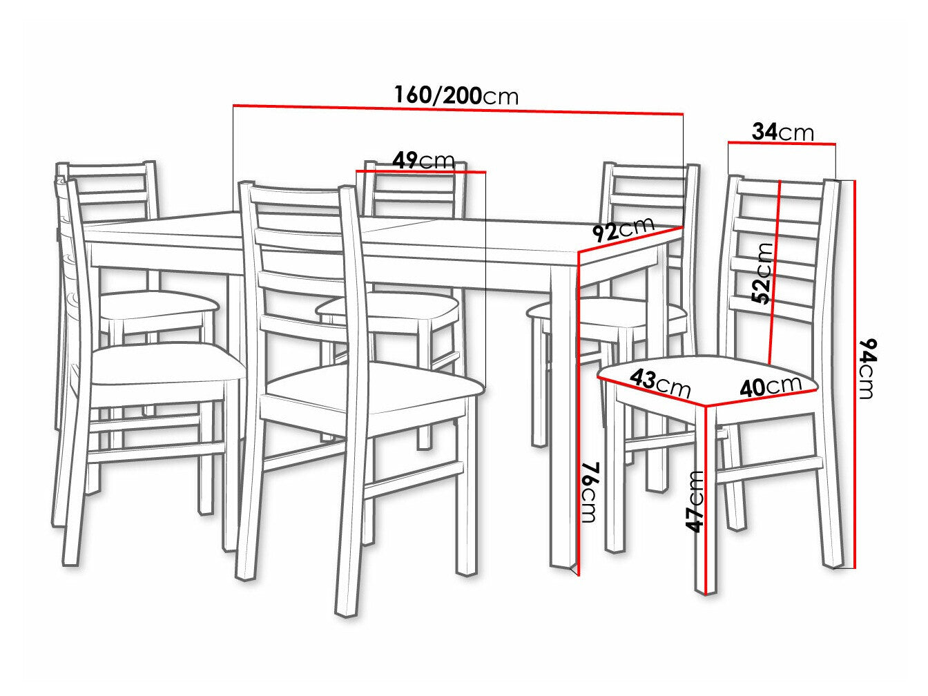 Dimensioner på stole94 x 43 x 49 cm