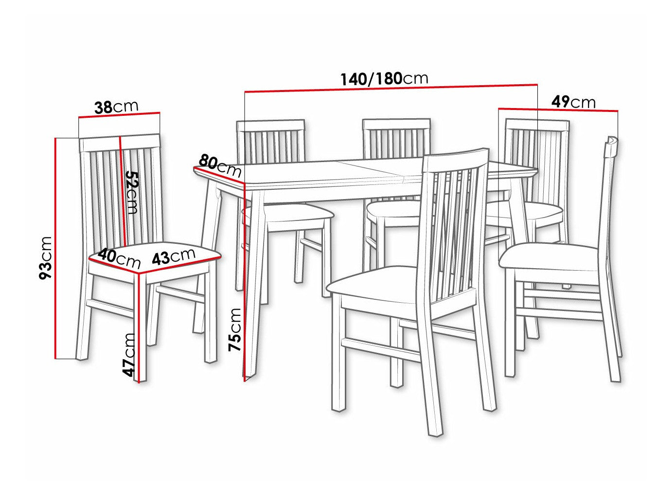Dimensioner på stole93 x 43 x 49 cm