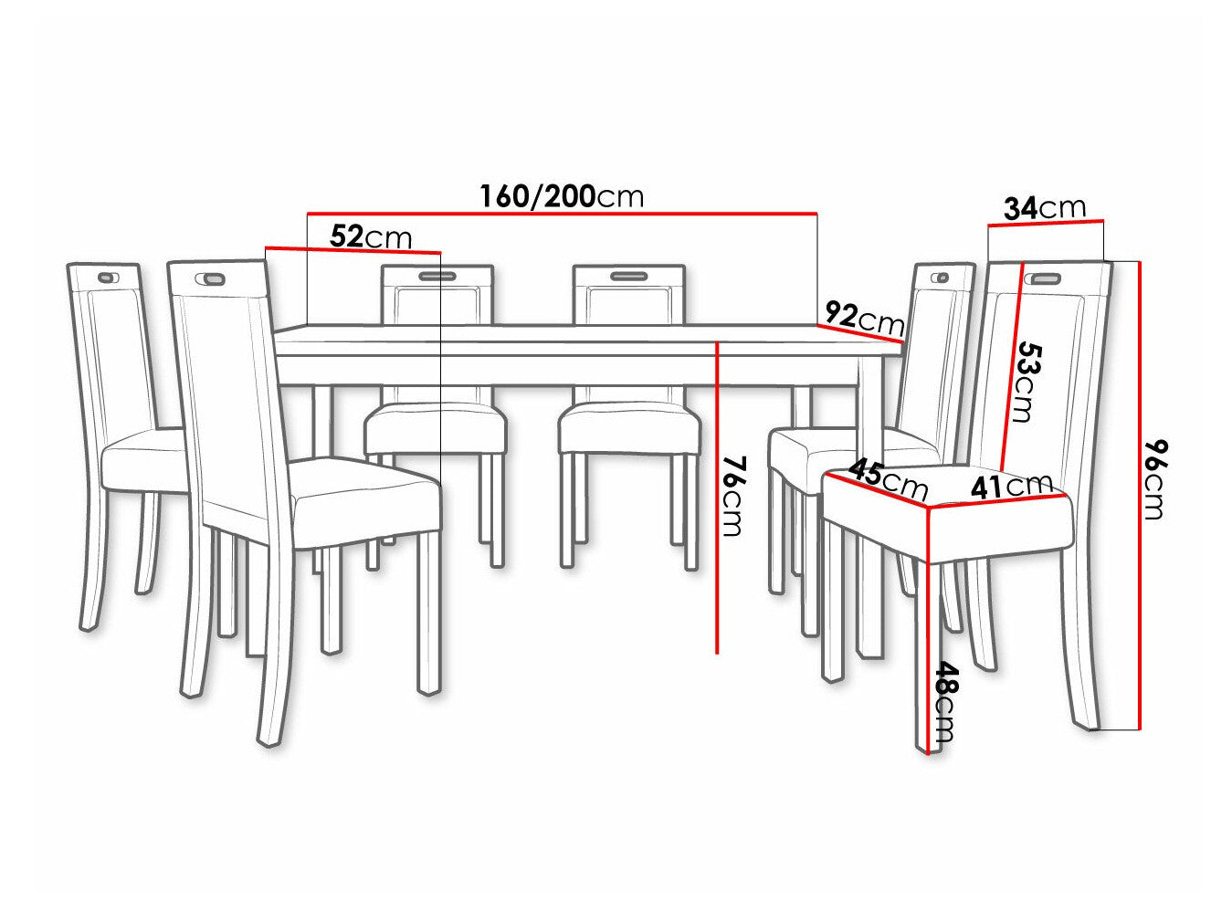 Dimensioner på stole96 x 41 x 52 cm