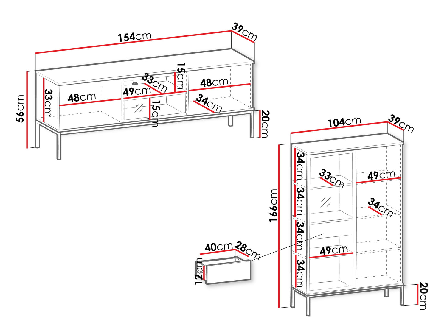 TV bordets dimensioner56 x 154 x 39 cm