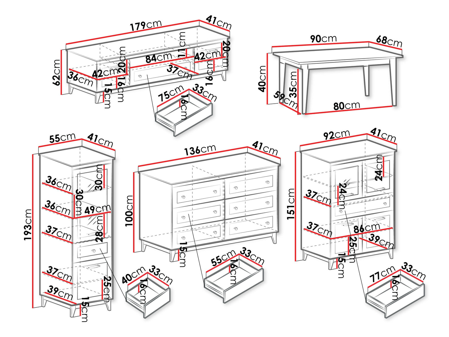 TV bordets dimensioner62 x 179 x 41 cm