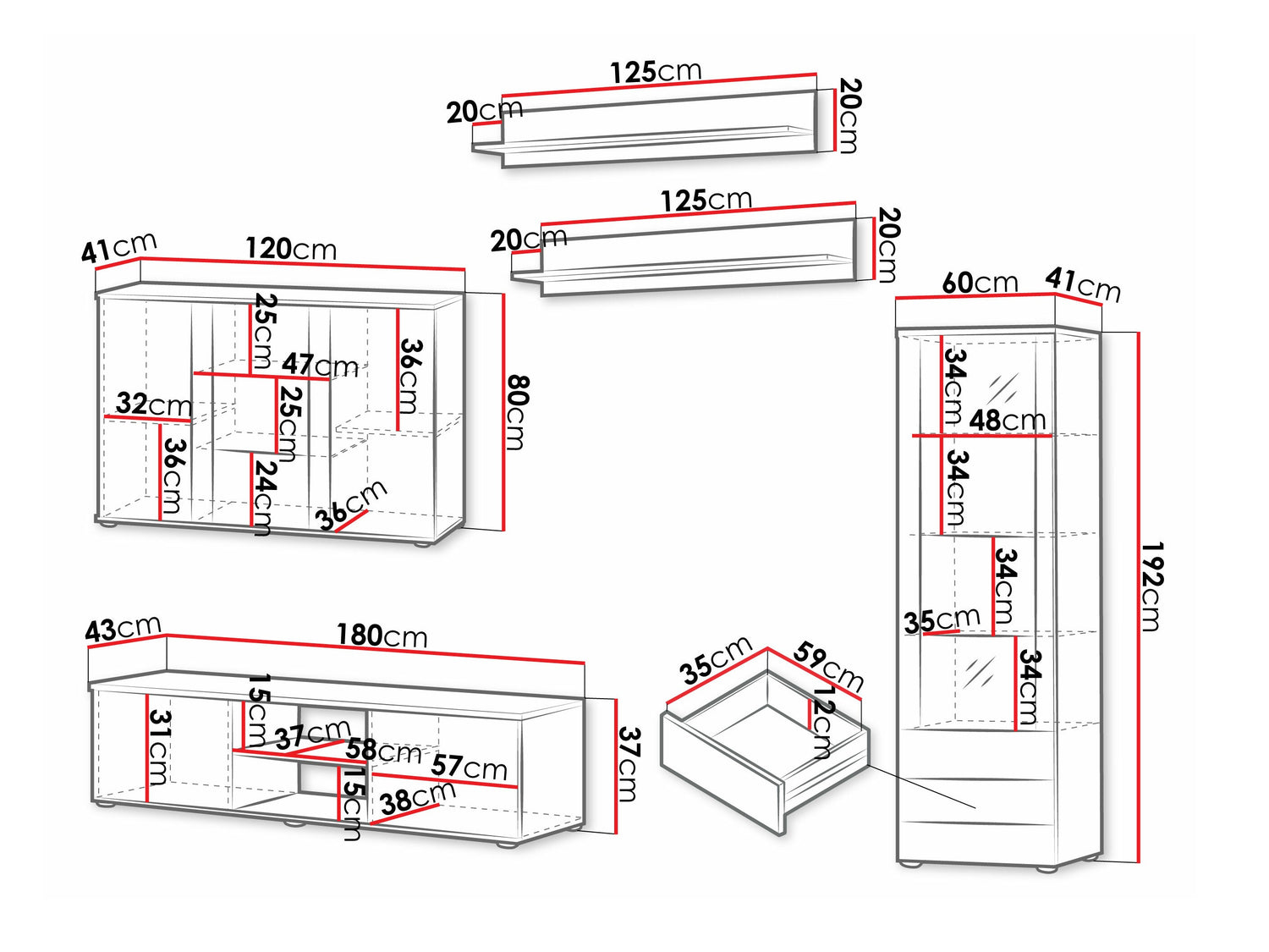37 x 180 x 43 cm