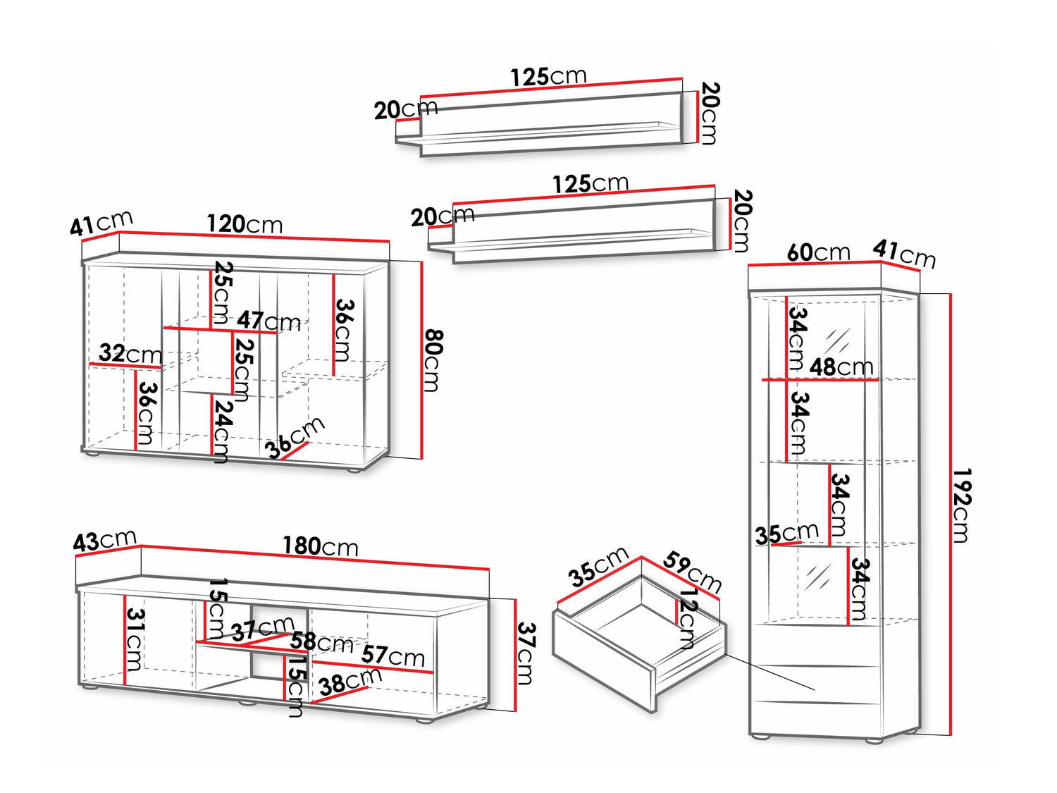 Pakkens dimensioner1 X 195 x 43.5 x 7.5 (cm) / 30 kg1 X 135 x 21.5 x 8 (cm) / 12 kg1 X 195.5 x 54.5 x 9 (cm) / 49.5 kg1 X 85 x 41.5 x 12.5 (cm) / 22.5 kg1 X 125 x 41 x 10 (cm) / 27 kg1 X 79 x 50 x 7 (cm) / 15 kg