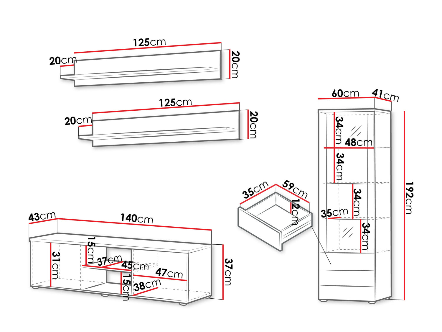TV bordets dimensioner37 x 140 x 43 cm