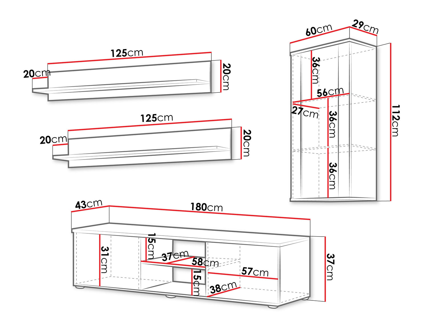Hængende skabs dimensioner116 x 60 x 29 cm