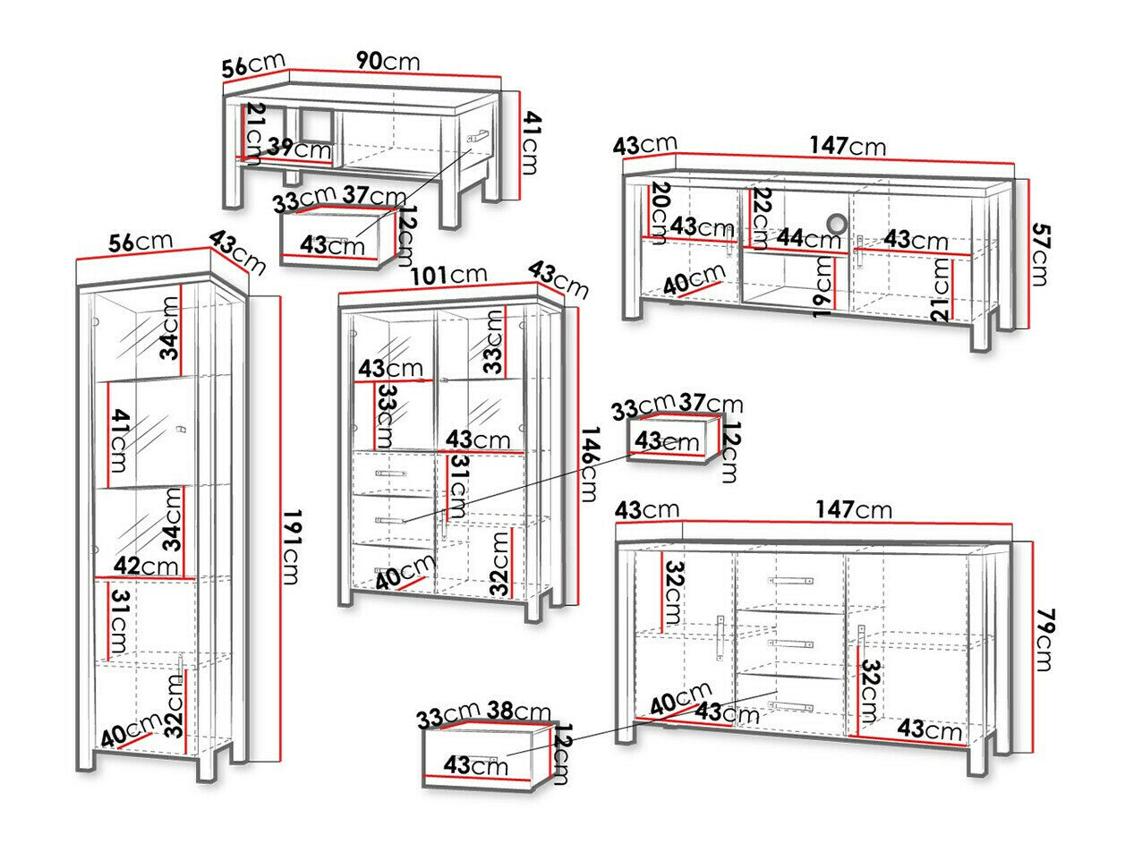Reol dimensioner146 x 101 x 43 x 56 x 43 cm
