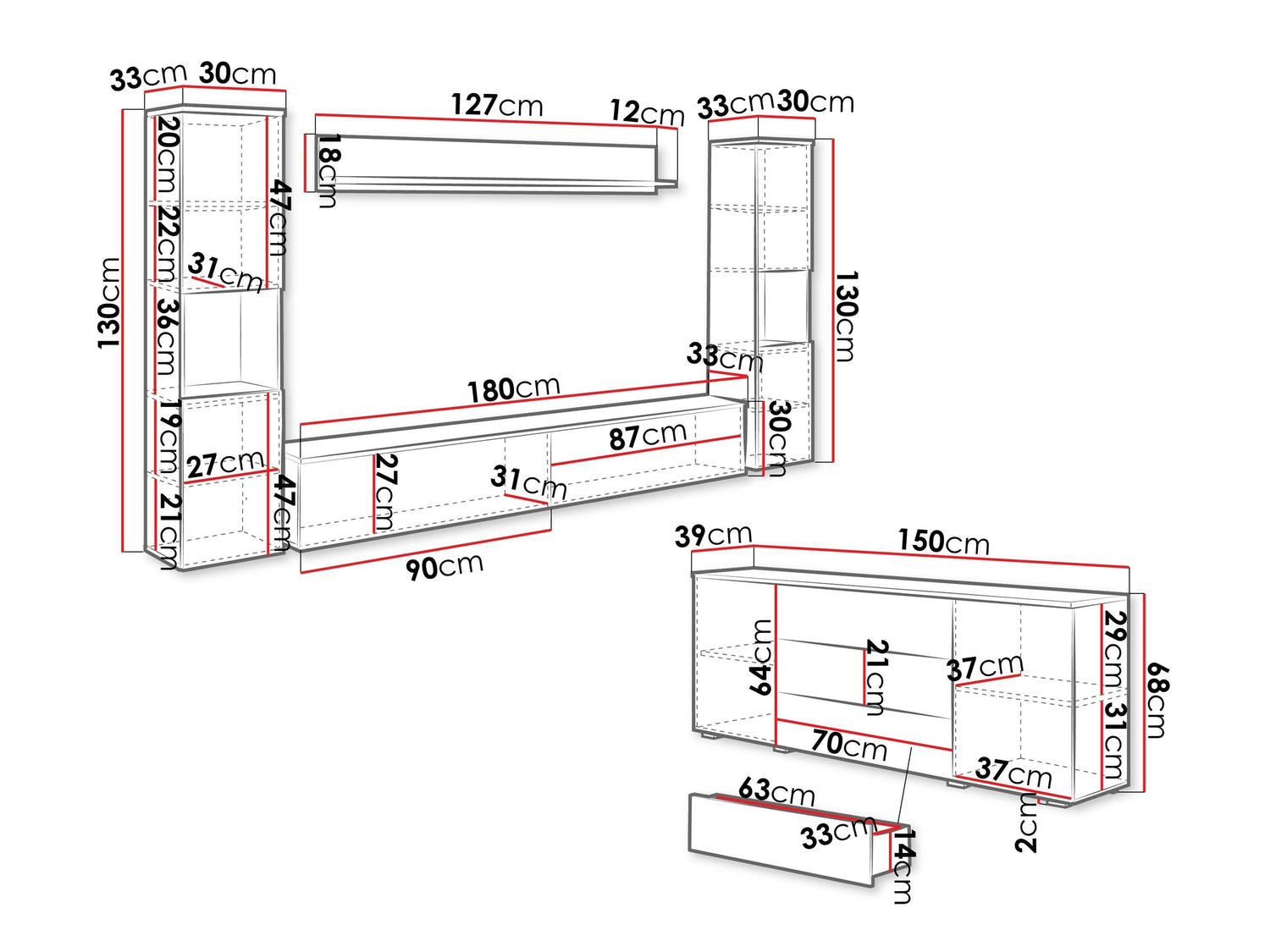 Pakkens dimensioner1 X 136.5 x 35.5 x 14.3 (cm) / 27 kg1 X 136.5 x 35.5 x 11.8 (cm) / 21.5 kg1 X 188.5 x 37.5 x 11.8 (cm) / 27 kg1 X 159 x 49 x 12 (cm) / 29 kg1 X 79 x 44 x 17 (cm) / 22 kg