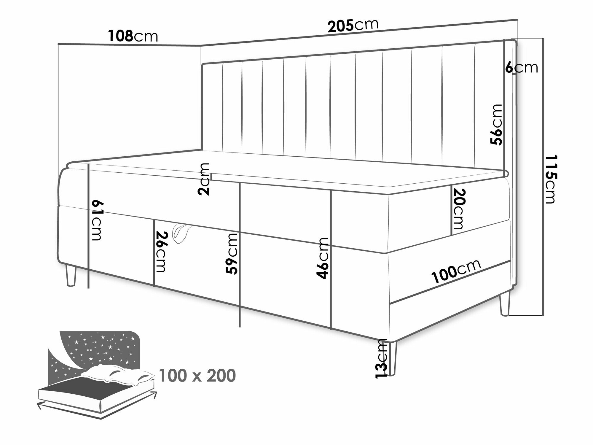 Sengekasse dimensioner: