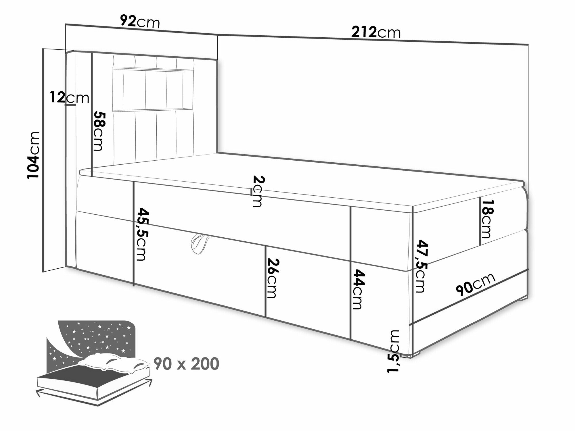 Sengekasse dimensioner: