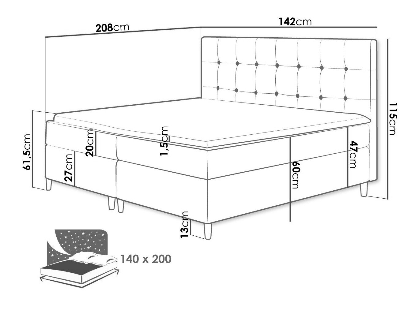 - 140 x 200 cm