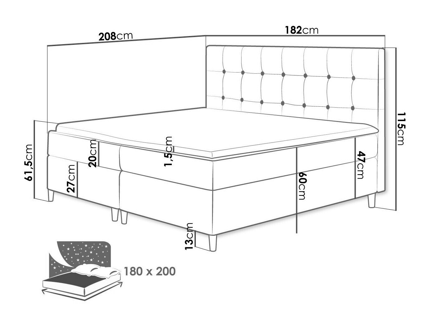 - 180 x 200 cm