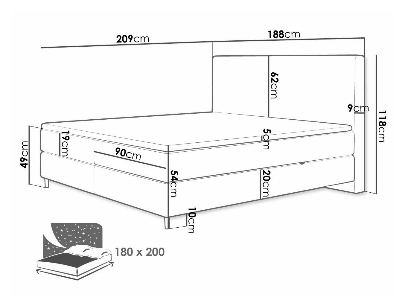 - 180 x 200 cm