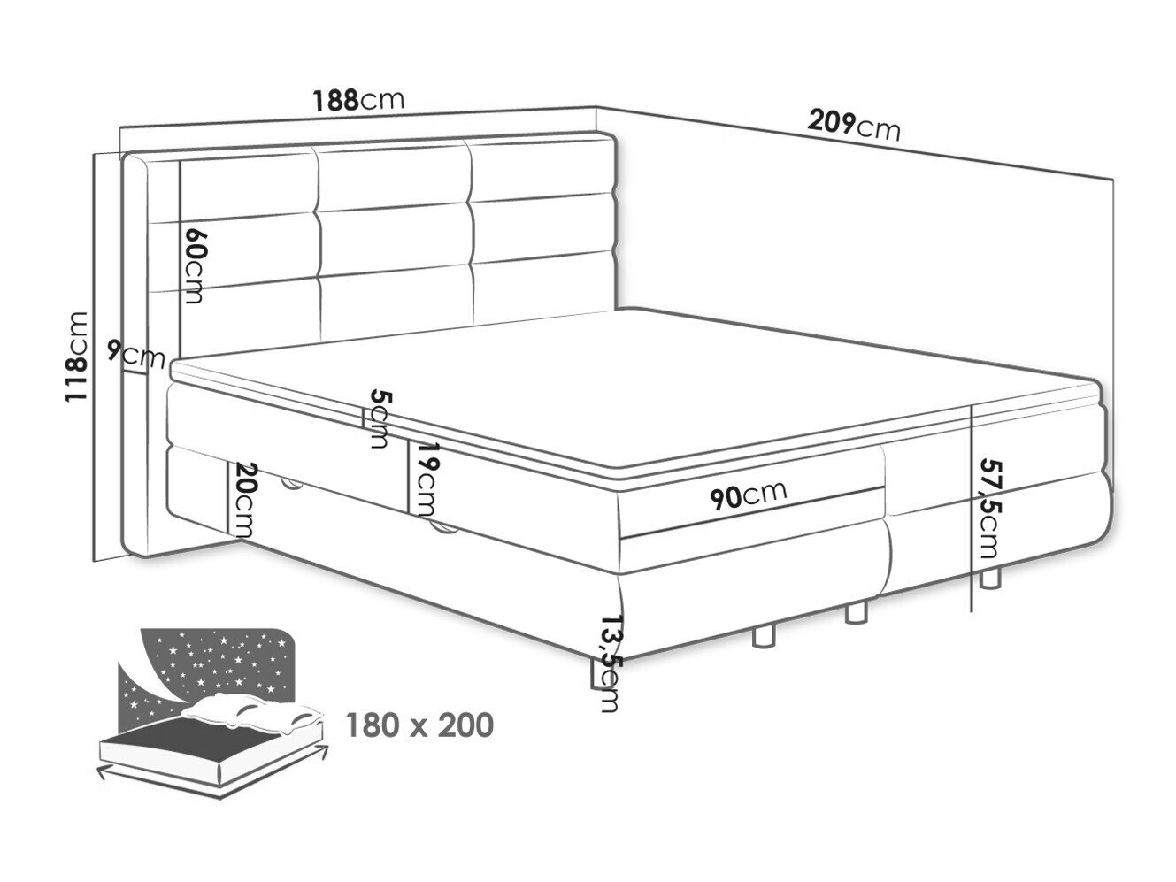 - 180 x 200 cm