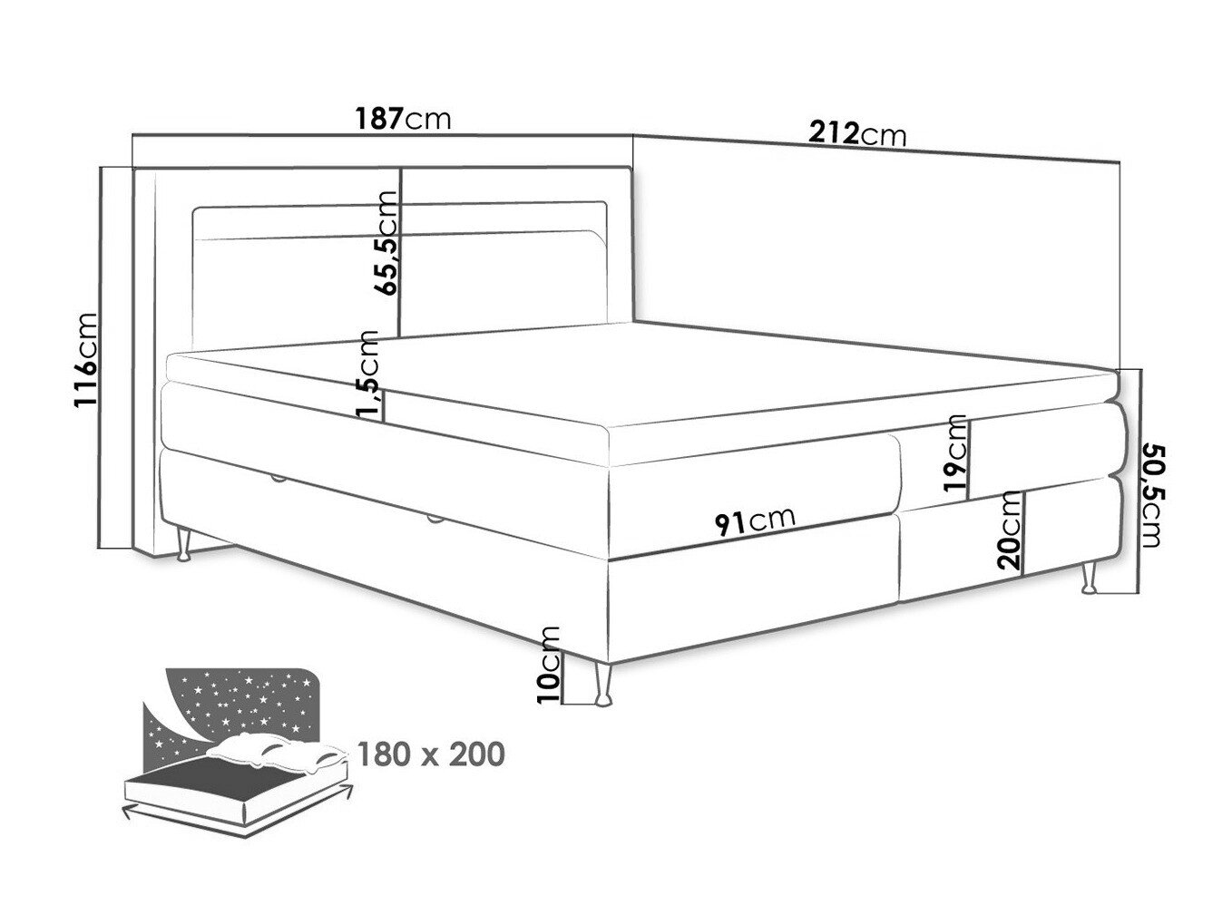 - 180 x 200 cm