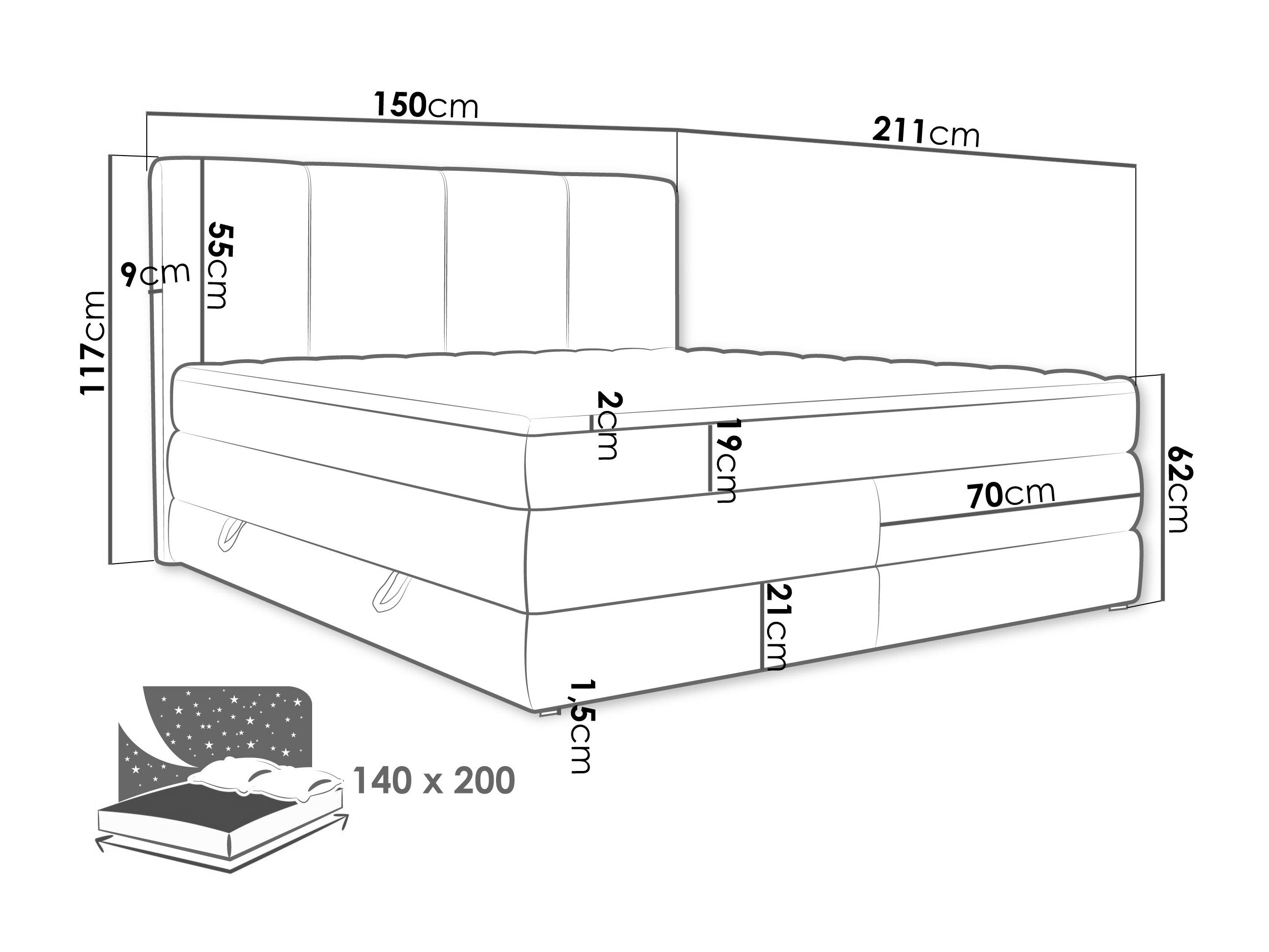 - 140 x 200 cm