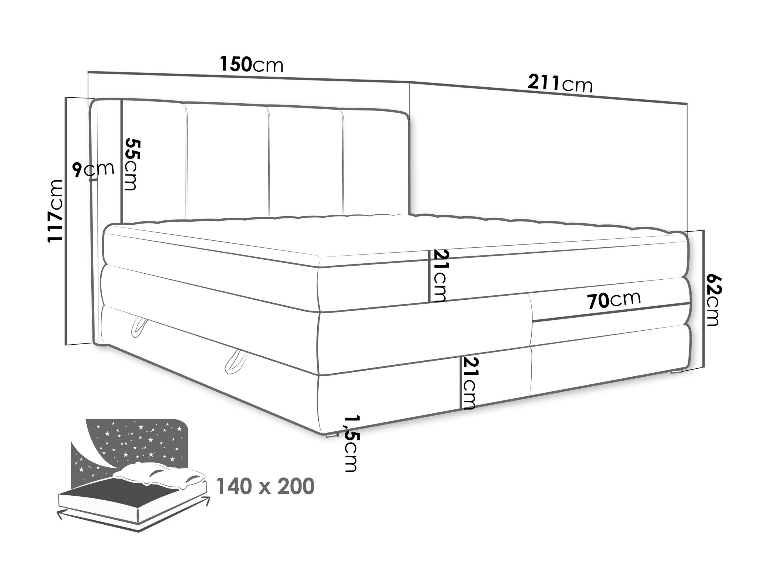 - 140 x 200 cm