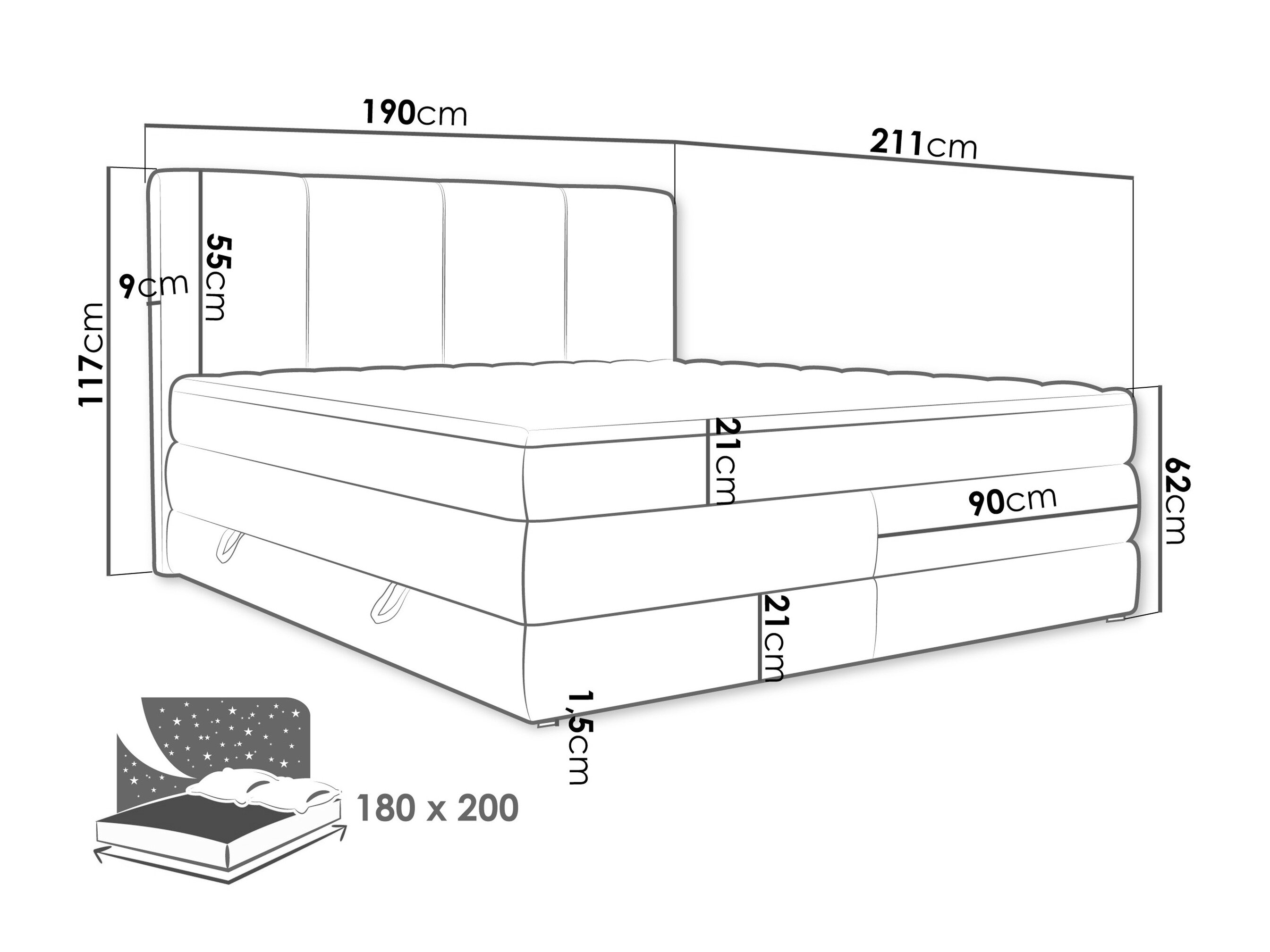117 x 190 x 9 cm
