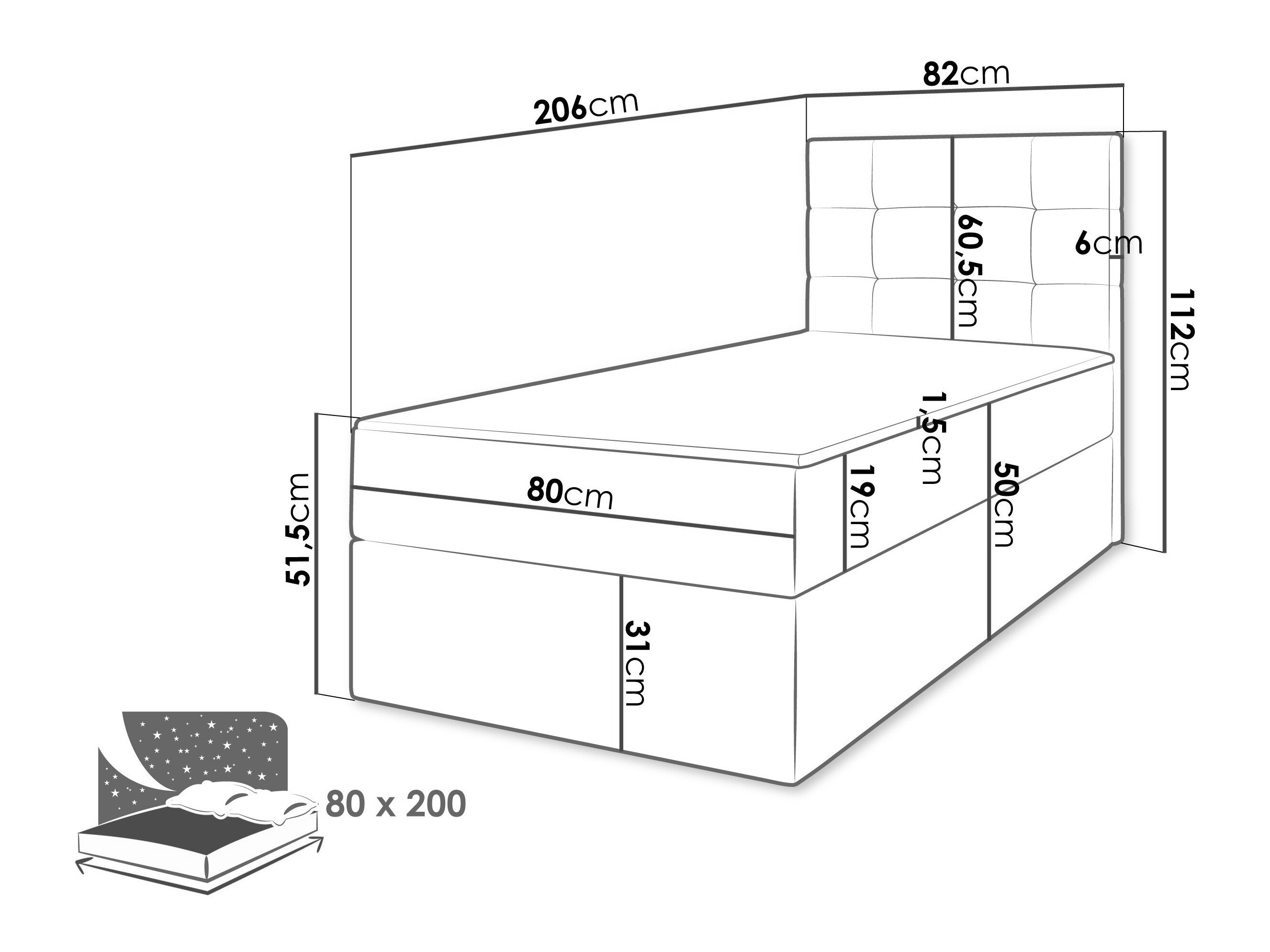- 80 x 200 cm