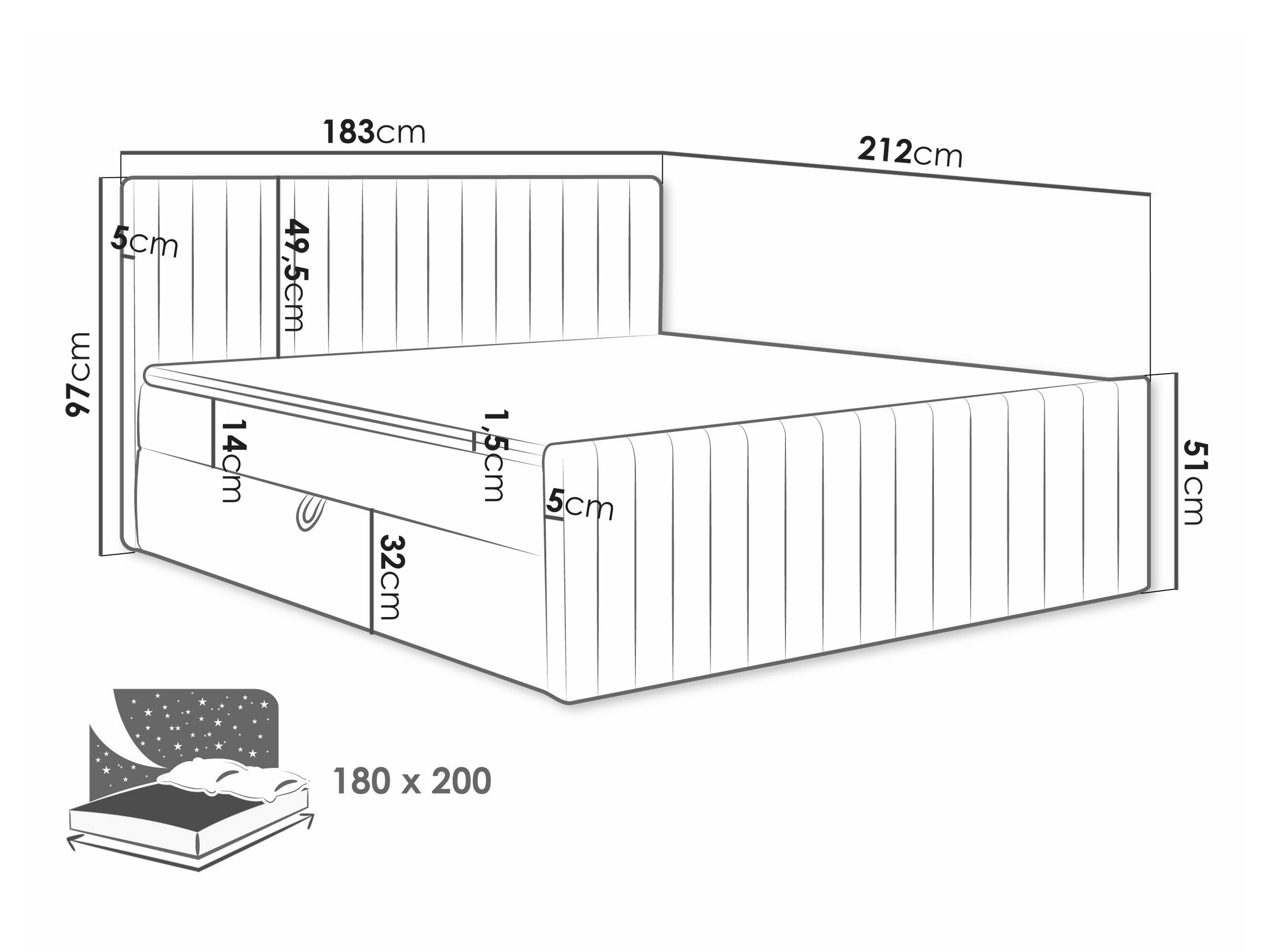 - 180 x 200 cm