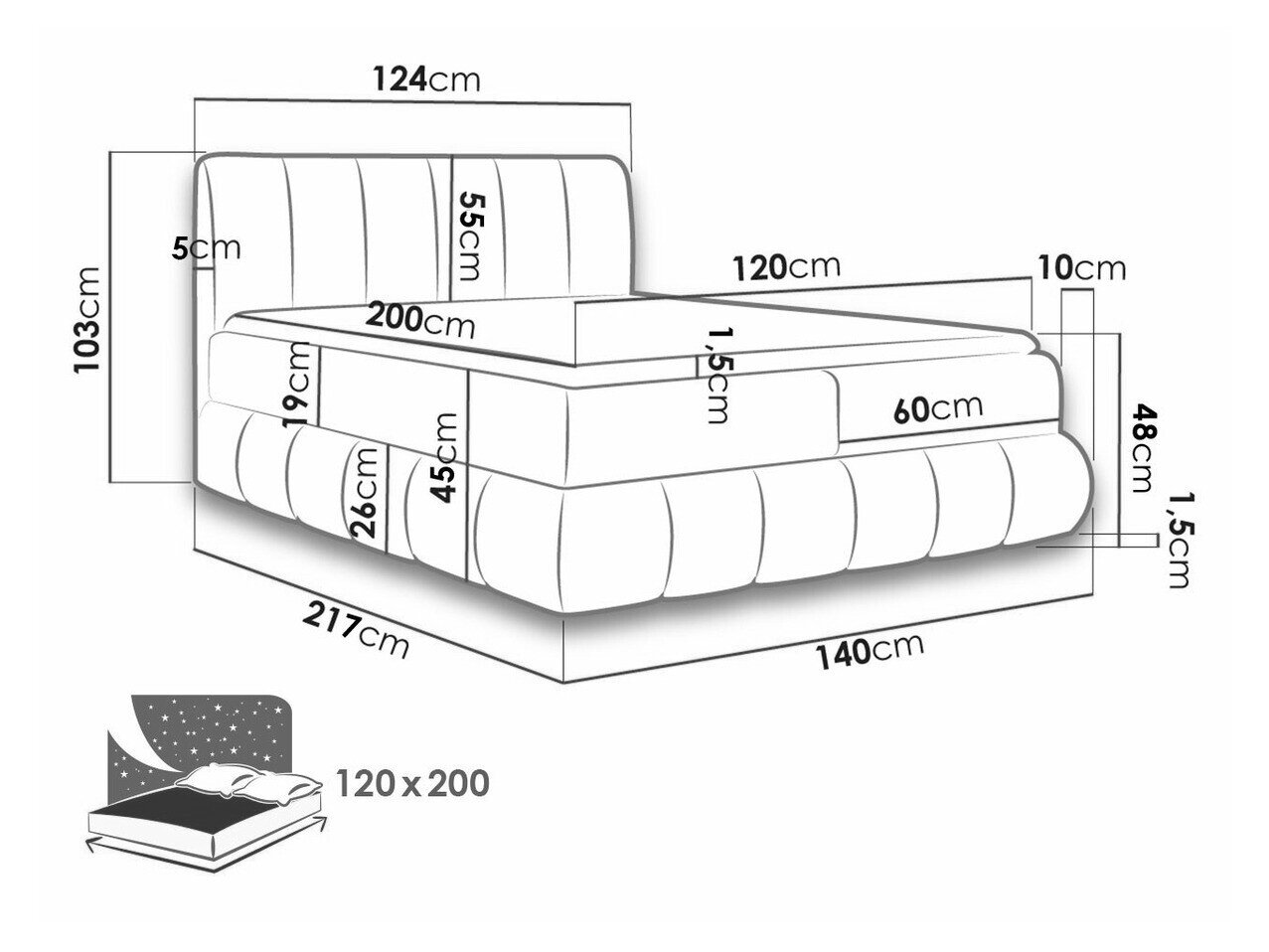 Sengekasse dimensioner: