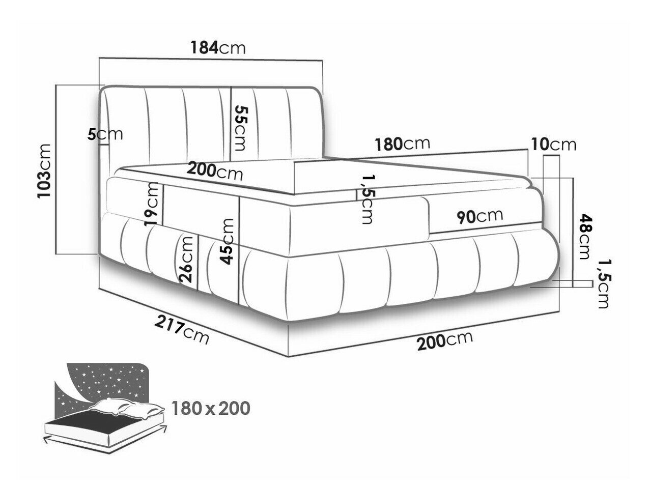 - 180 x 200 cm