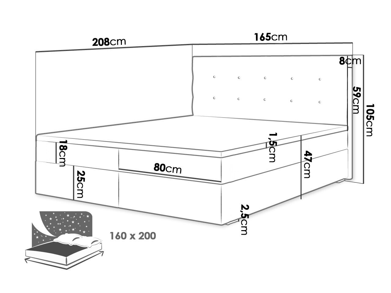 105 cm  185 cm  208 cm
