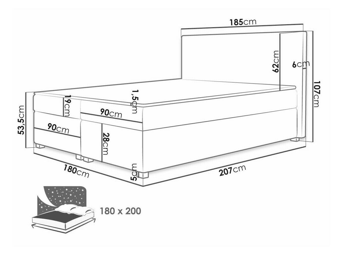 - 180 x 200 cm
