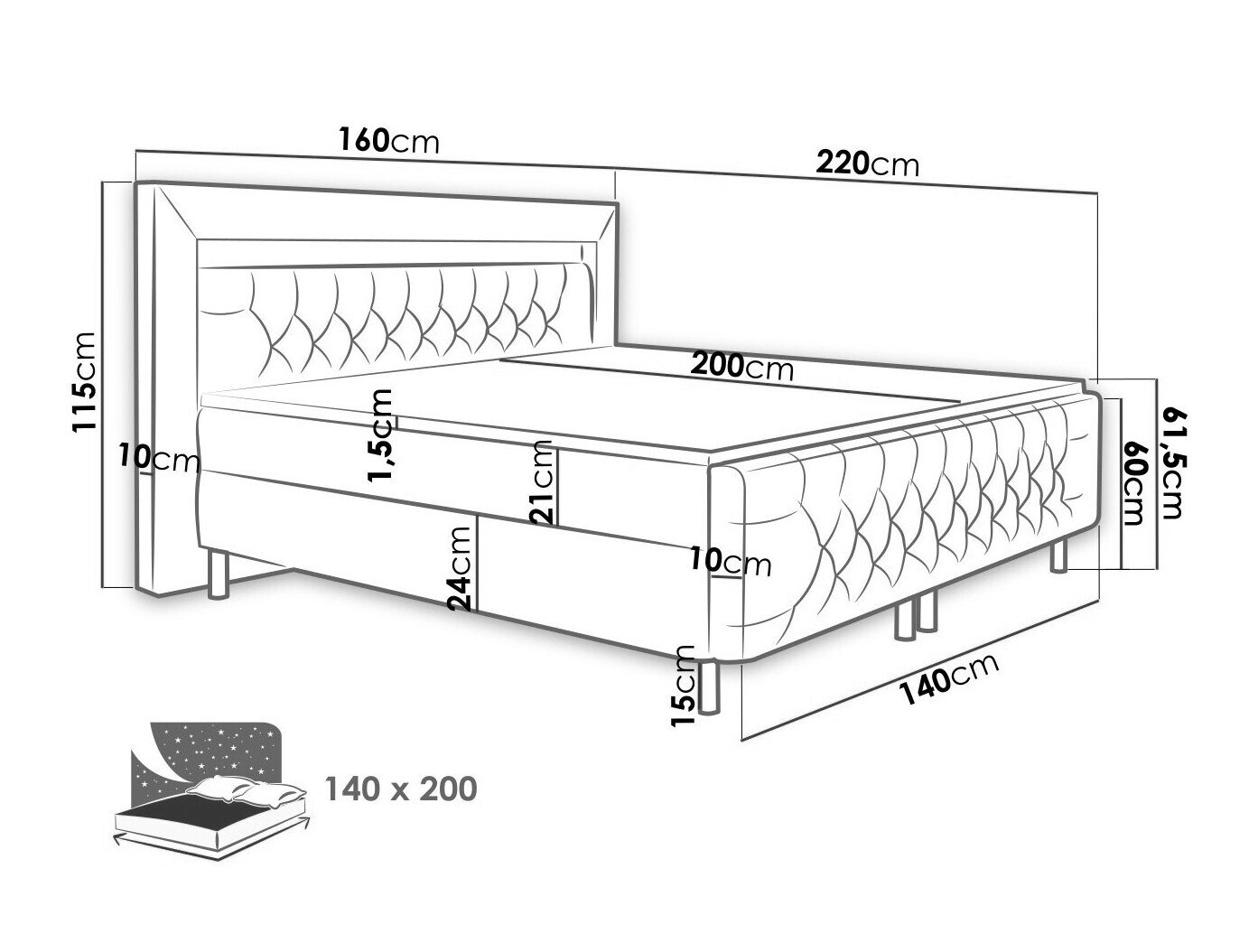 - 140 x 200 cm