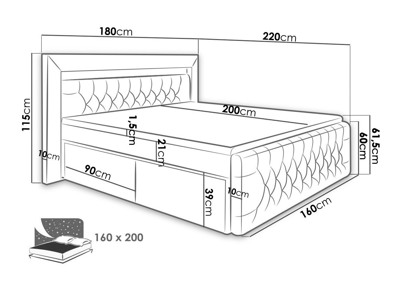- 160 x 200 cm