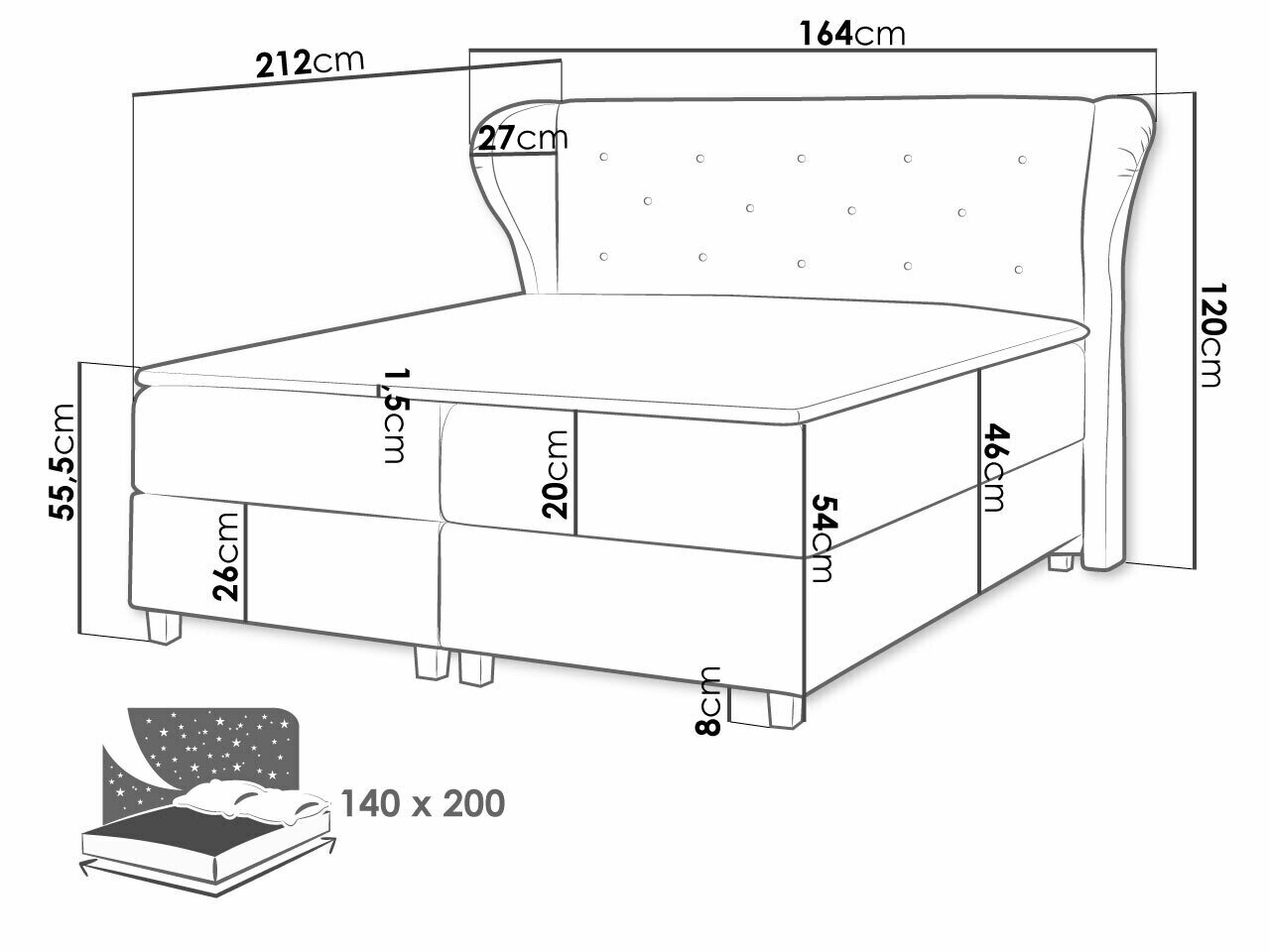 115 cm  140 cm  215 cm