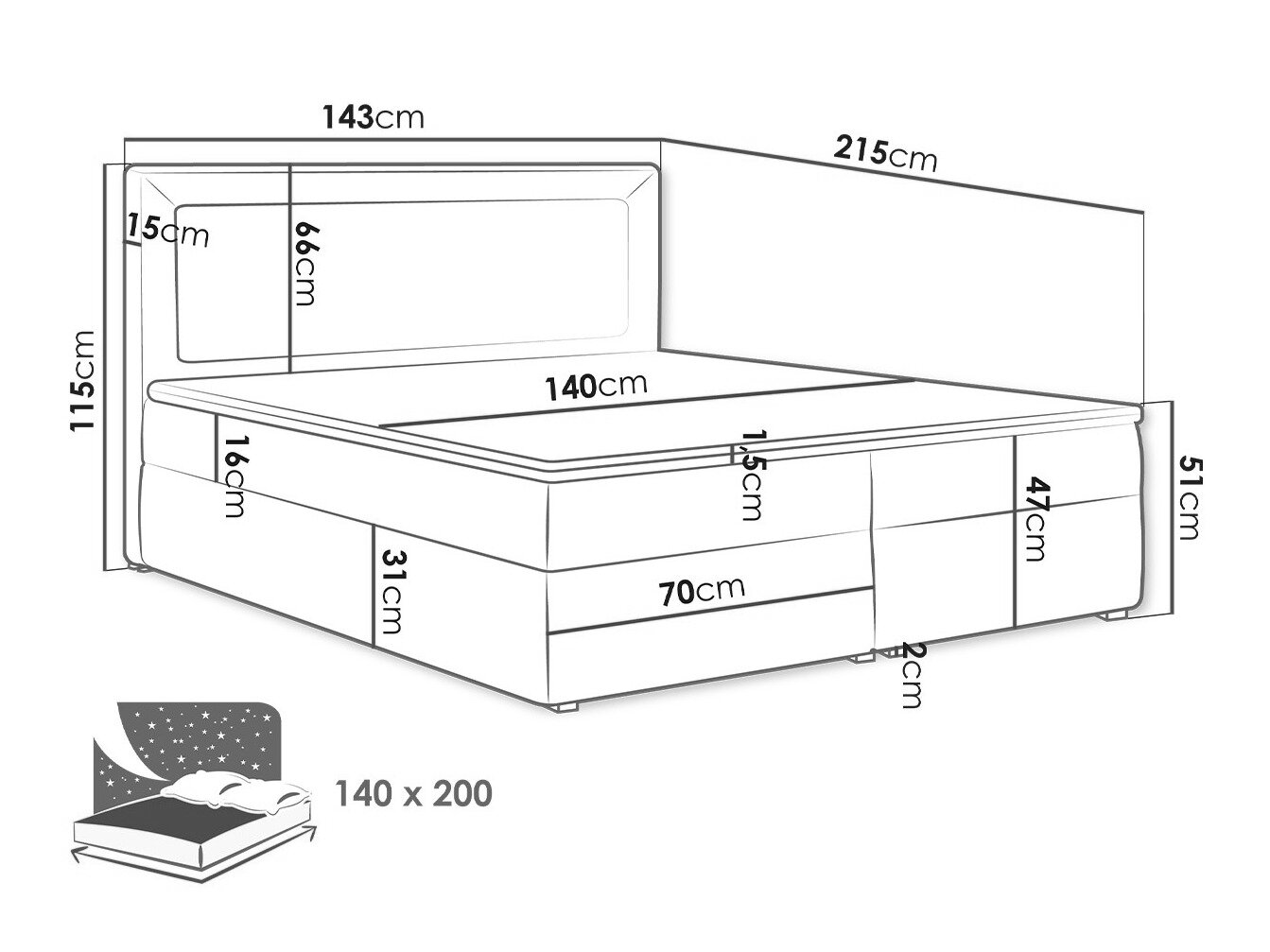 - 140 x 200 cm