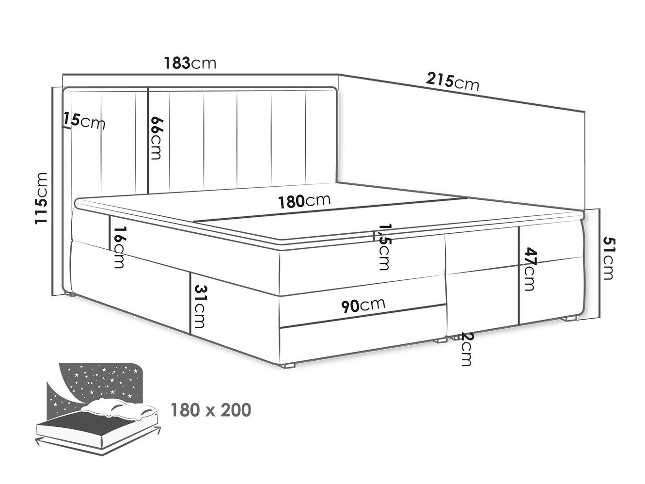 - 180 x 200 cm